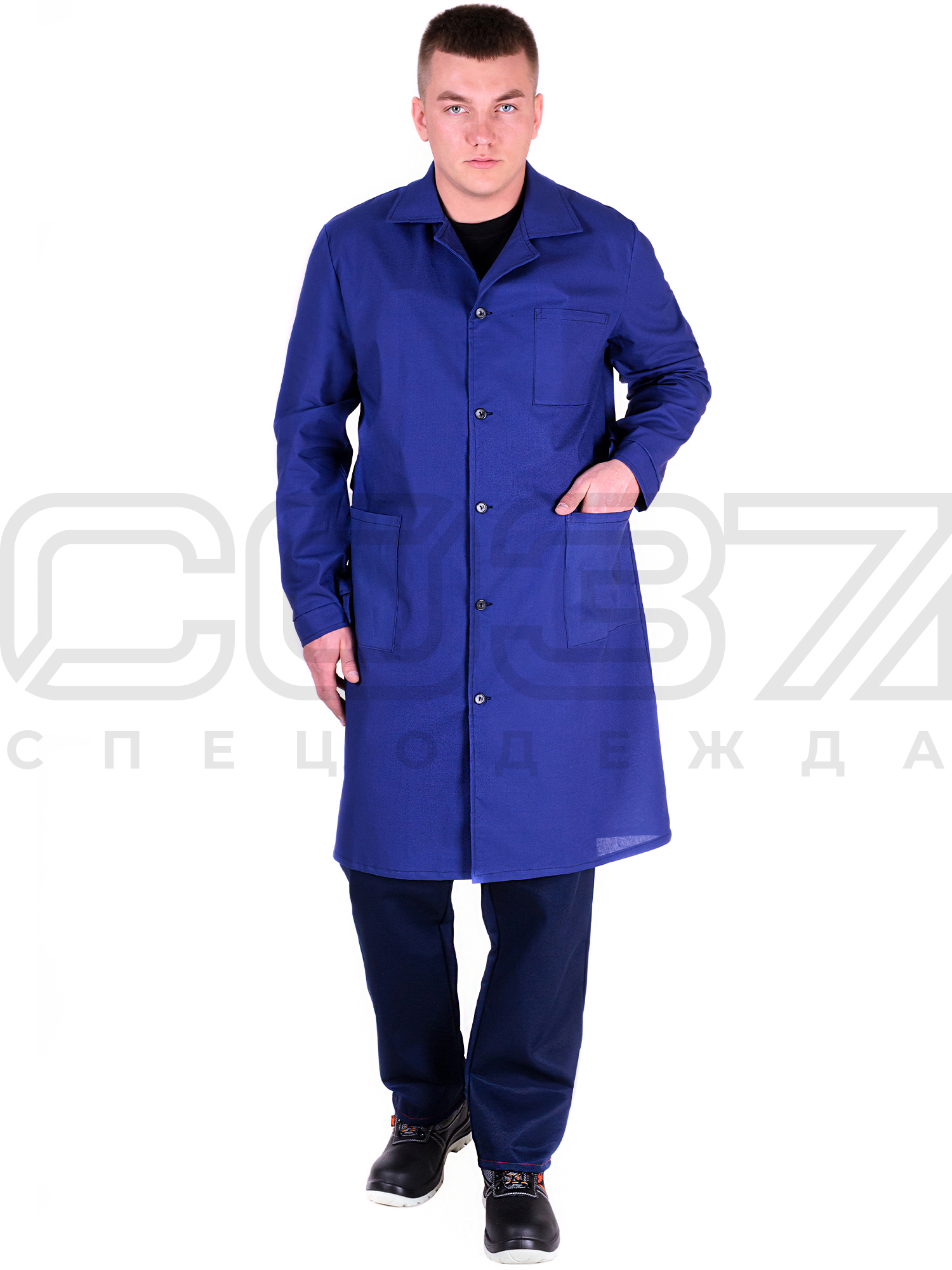 Халат рабочий мужской "Метролог" цв.тёмно-синий тк.бязь в Иркутске