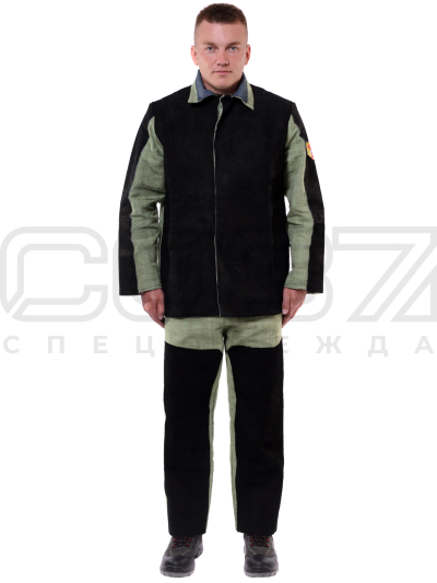 Костюм сварщика комбинированный "Искра" тк.брезент пл.480 гр/м² + спилок 2.3 м в Иркутске