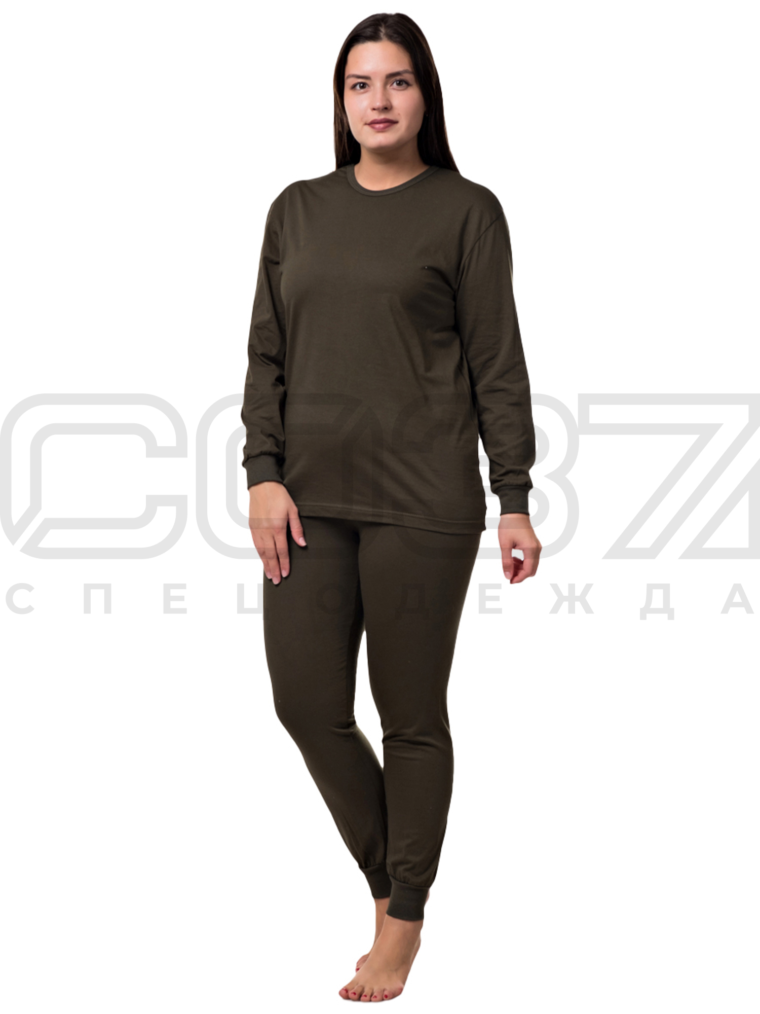 Бельё нательное женское утеплённое цв.олива тк.100% хлопок в Иркутске